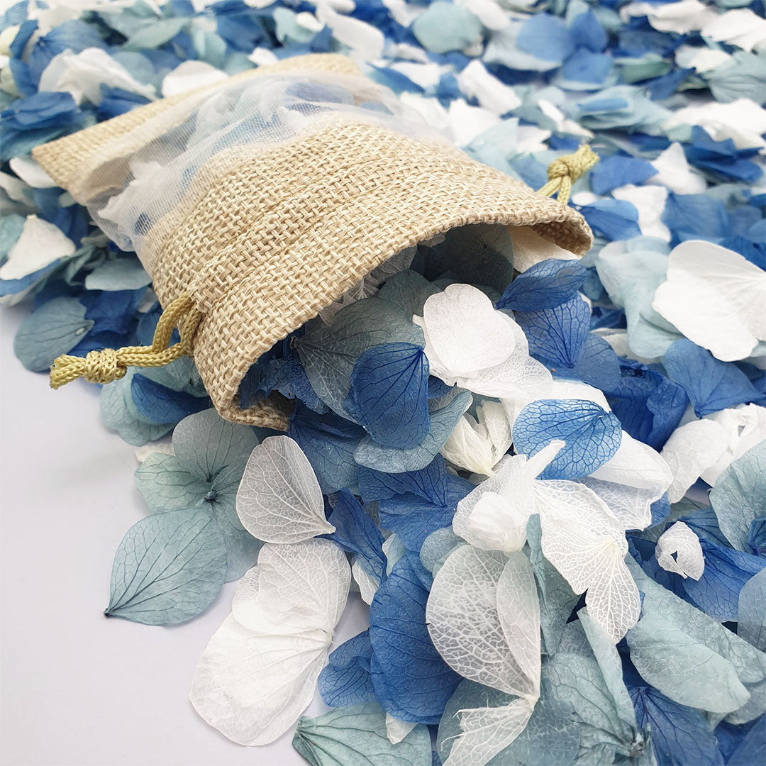 Hydrangea-based wedding confetti is a beautiful and versatile way to enhance your special day, and our Blue Moon Confetti is perfect for couples looking to create a magical, atmospheric confetti moment. Whether used as petals for flower girls to scatter down the aisle, to decorate wedding breakfast tables, or for the joy of traditional confetti throwing, these elegant petals will add a sense of romance and wonder to your celebration.