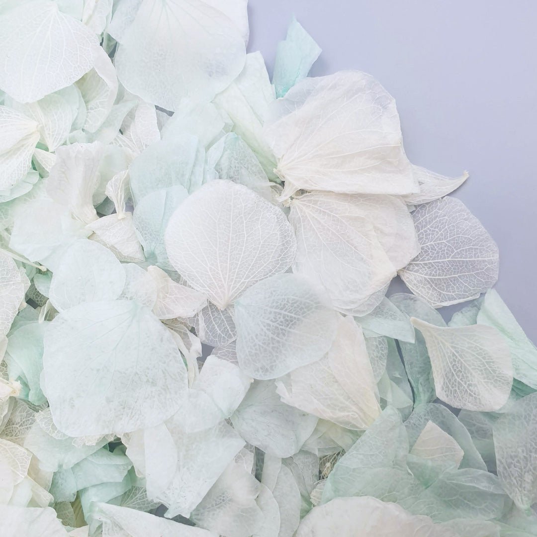 Wir lieben einfach diese üppige Mischung aus unseren klassischen Vintage-Elfenbein-Hortensienblütenblättern, dunkelrosa Hortensienblütenblättern und einer leichten Prise kräftig orangefarbener Hortensienblütenblätter . Die Hortensienblätter sind zu 100 % natürlich und biologisch abbaubar und wurden behandelt, um unser berühmtes Finish zu erzielen (und beizubehalten). Bitten Sie uns nur nicht, unsere Geheimformel für die Gewährleistung ihrer einzigartigen, herrlich reinen Farbe zu verraten – wir werden es Ihnen niemals verraten!