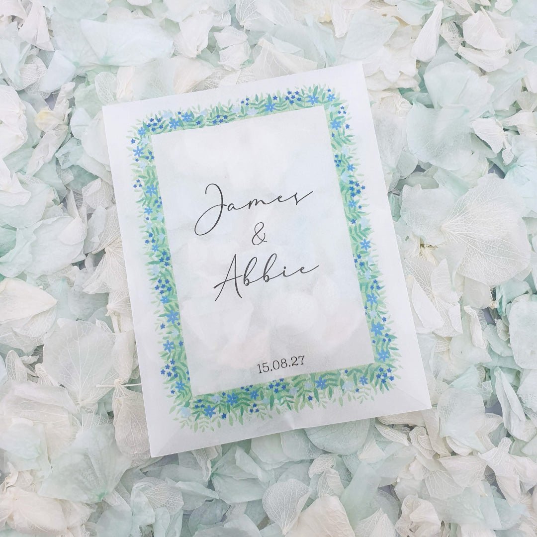 Wir liefern Konfetti in verschiedenen Formen, am häufigsten jedoch in 1-Liter-Beuteln. Zur Verdeutlichung: Die Beutel selbst fassen tatsächlich eine Menge von über 1 Liter, sodass die Beutel nicht zu 100 % bis zum Rand gefüllt sind. Dadurch soll sichergestellt werden, dass rund um die Blütenblätter etwas Platz bleibt, um sie abzufedern und zu verhindern, dass sie während des Transports gequetscht werden.