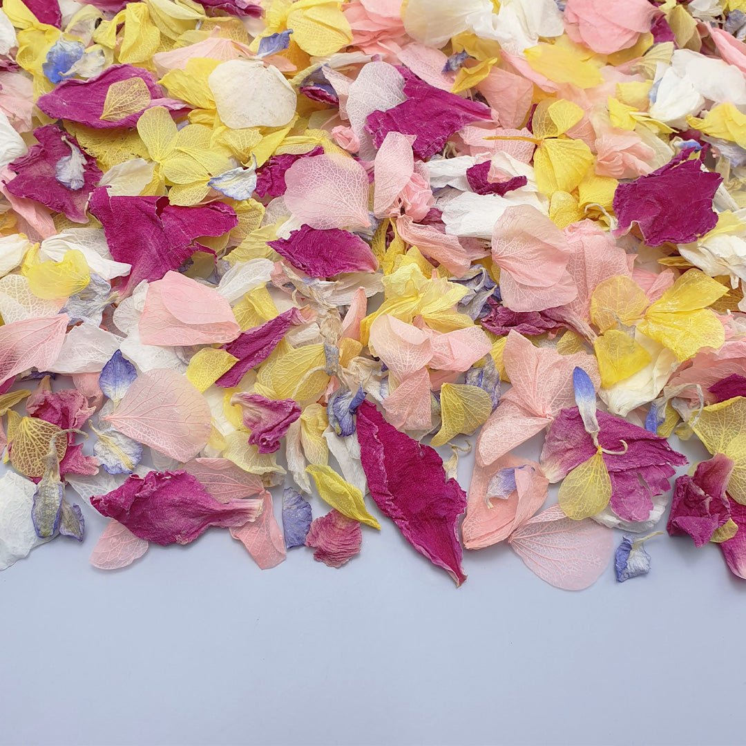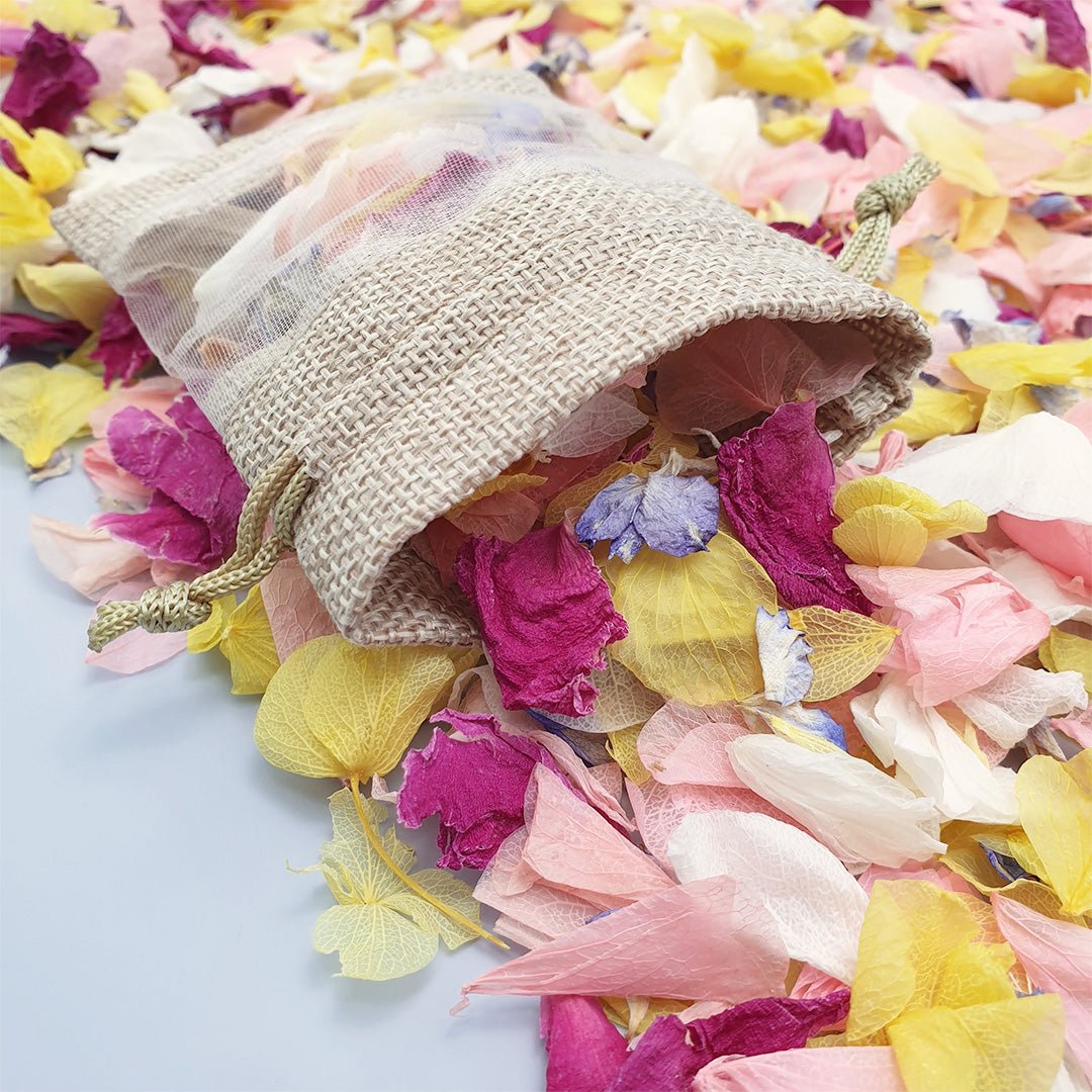 Da unser Konfetti aus getrockneten Blütenblättern hergestellt wird, ist es von Natur aus umweltfreundlich und biologisch abbaubar . Wir wissen, wie wichtig dies ist, da wir wissen, dass viele Veranstaltungsorte vorschreiben, dass nur biologisch abbaubares Konfetti verwendet werden darf.