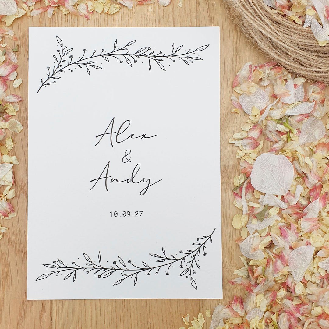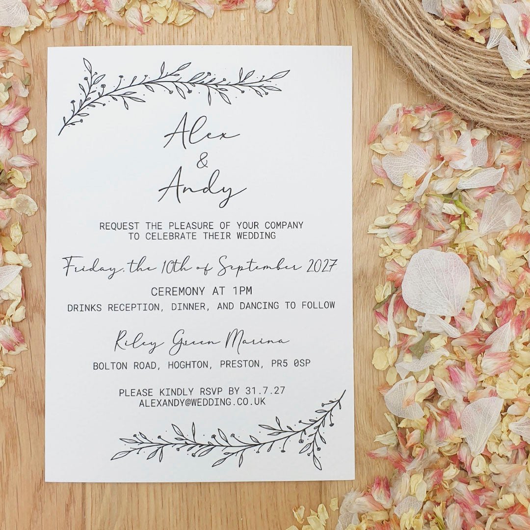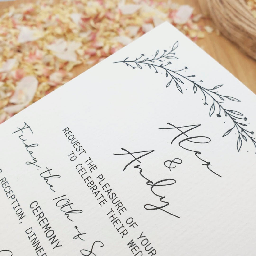 Make a timeless first impression with our personalised luxury wedding invitations in Floral Design 1, beautifully printed on recycled premium 320gsm felt white card for an elegant look and delightful tactile experience. Designed for couples who appreciate refined details, this invitation sets the tone for a truly special celebration.