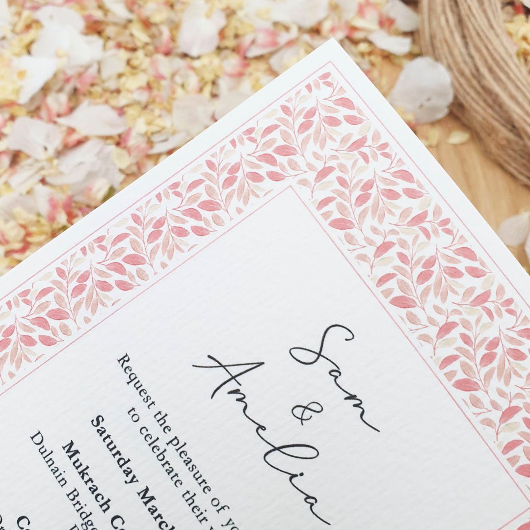 Make a timeless first impression with our personalised luxury wedding invitations in Floral Design 16, beautifully printed on recycled premium 320gsm felt white card for an elegant look and delightful tactile experience. Designed for couples who appreciate refined details, this invitation sets the tone for a truly special celebration.