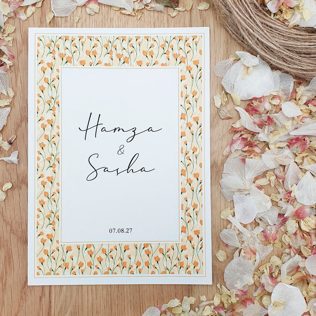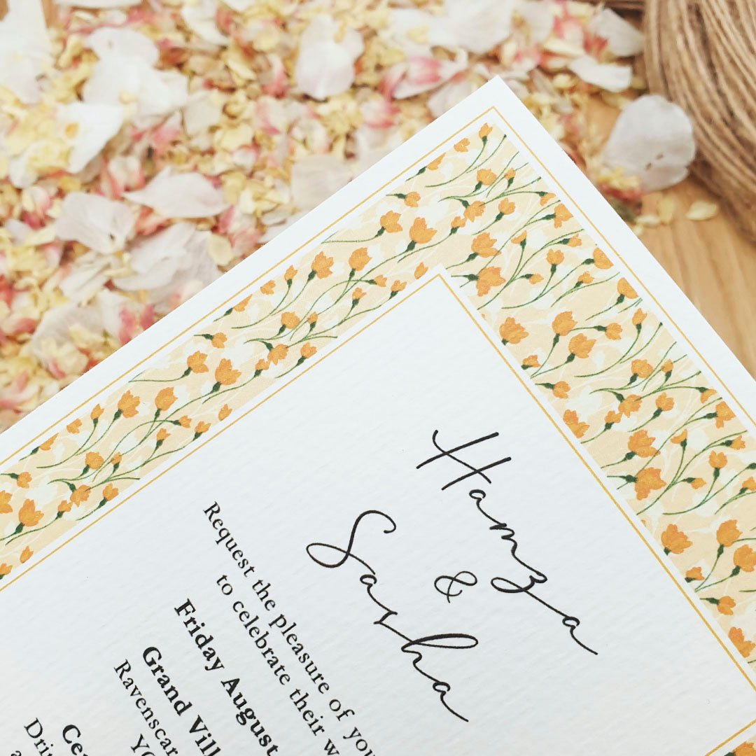 Make a timeless first impression with our personalised luxury wedding invitations in Floral Design 17, beautifully printed on recycled premium 320gsm felt white card for an elegant look and delightful tactile experience. Designed for couples who appreciate refined details, this invitation sets the tone for a truly special celebration.