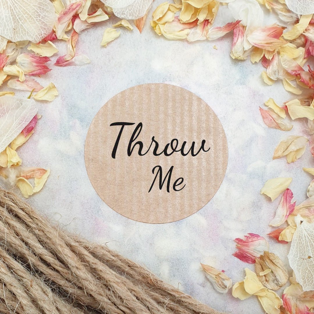 Adjunte estas pegatinas de 'Tírame' al paquete de confeti que elijas para coordinar con el color y el tema del día de tu boda.